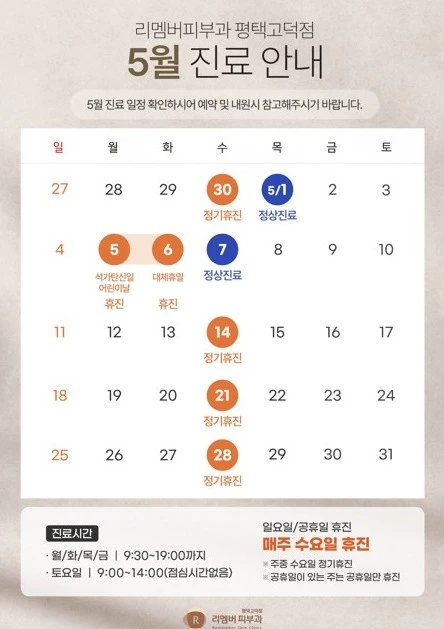 안녕하세요. 리멤버피부과의원 평택고덕점입니다.